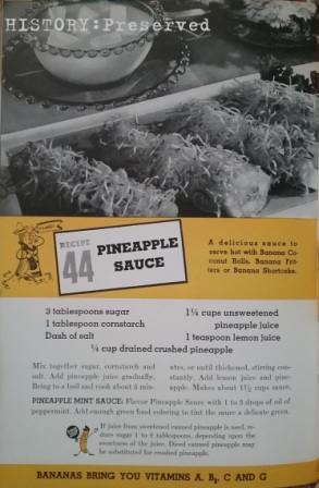 And second, is Banana Coconut Rolls. These are interesting on a whole bunch of levels! The Banana Coconut Rolls sounds quite yummy actually. But then, there are two different sauces to serve on top - Pineapple Sauce or Orange Sauce. The most interesting thing to me, though, is when you look at the picture of the recipe - look how finely shredded that coconut is! For me, as a vintage recipe baker, this is a total game changer. Modern shredded coconut is much wider than this. I don't think I've ever run across such long and finely shredded coconut in the store or anywhere else. (I'm sure there's somewhere online I could order it from...) When you mess with the size of the shred, it totally changes the texture of the food. My 1930s recipe for Coconut Macaroons would have a totally different mouth feel from what I've been making!